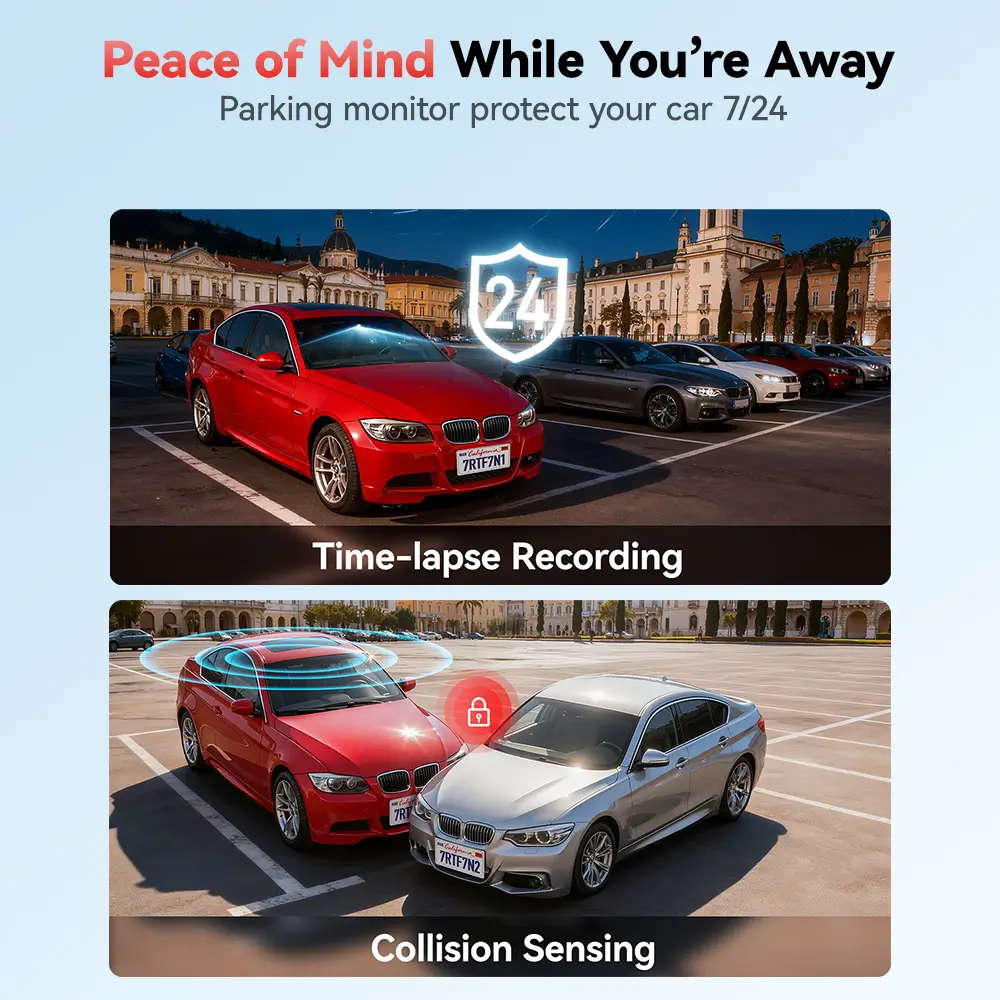 • Featuring with 170° Wide Angle, 24/7 Parking monitoring (Free Hardwire kit), WiFi & App control, GPS trucking, Super Night Vision, Loop Recording!